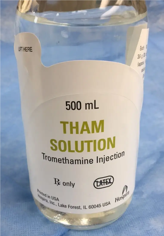 氨丁三醇為一種不含鈉的氨基緩沖堿,可充當質(zhì)子受體,能透過細胞膜,并通過積極結(jié)合氫離子來預防或糾正酸中毒。氨丁三醇不僅可以結(jié)合固定酸或代謝酸的陽離子,還可以結(jié)合碳酸的氫離子,從而增加碳酸氫根陰離子,還可作為滲透性利尿劑,增加尿流量和尿液pH值。因其不含鈉,特別適用于心力衰竭合并酸中毒者,適用于低溫麻醉、休克及心臟驟停的搶救。
